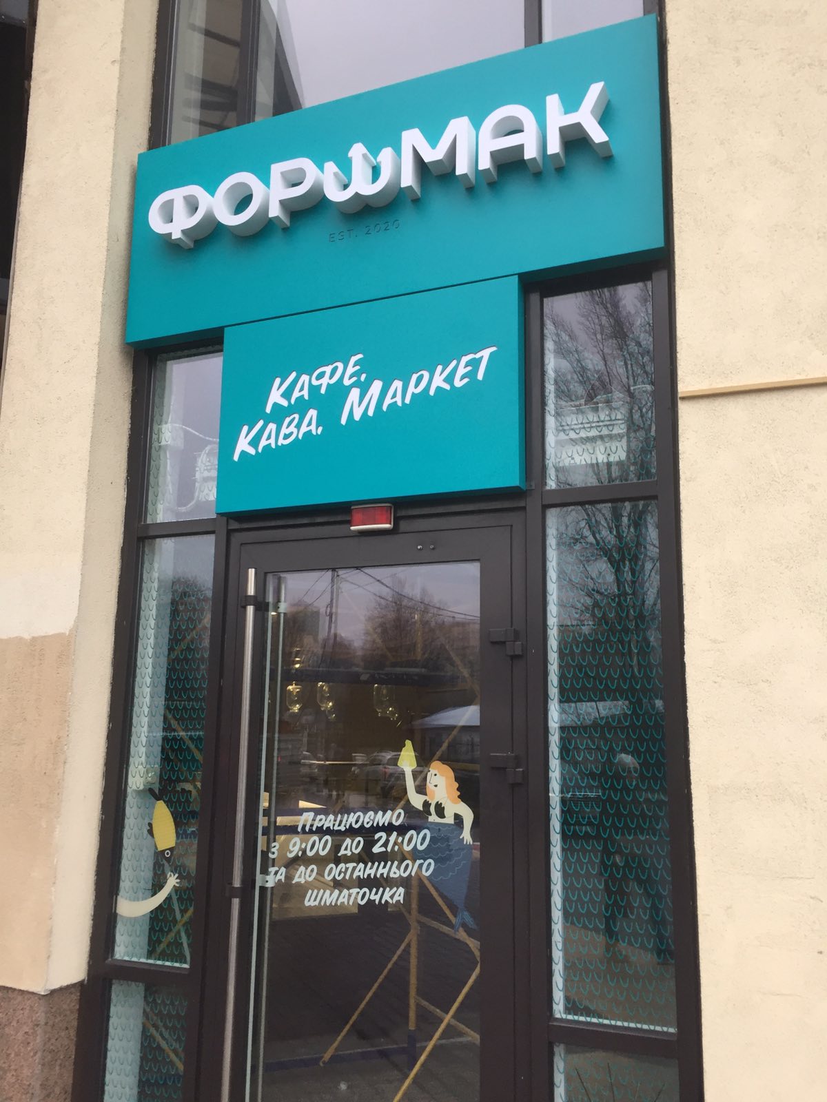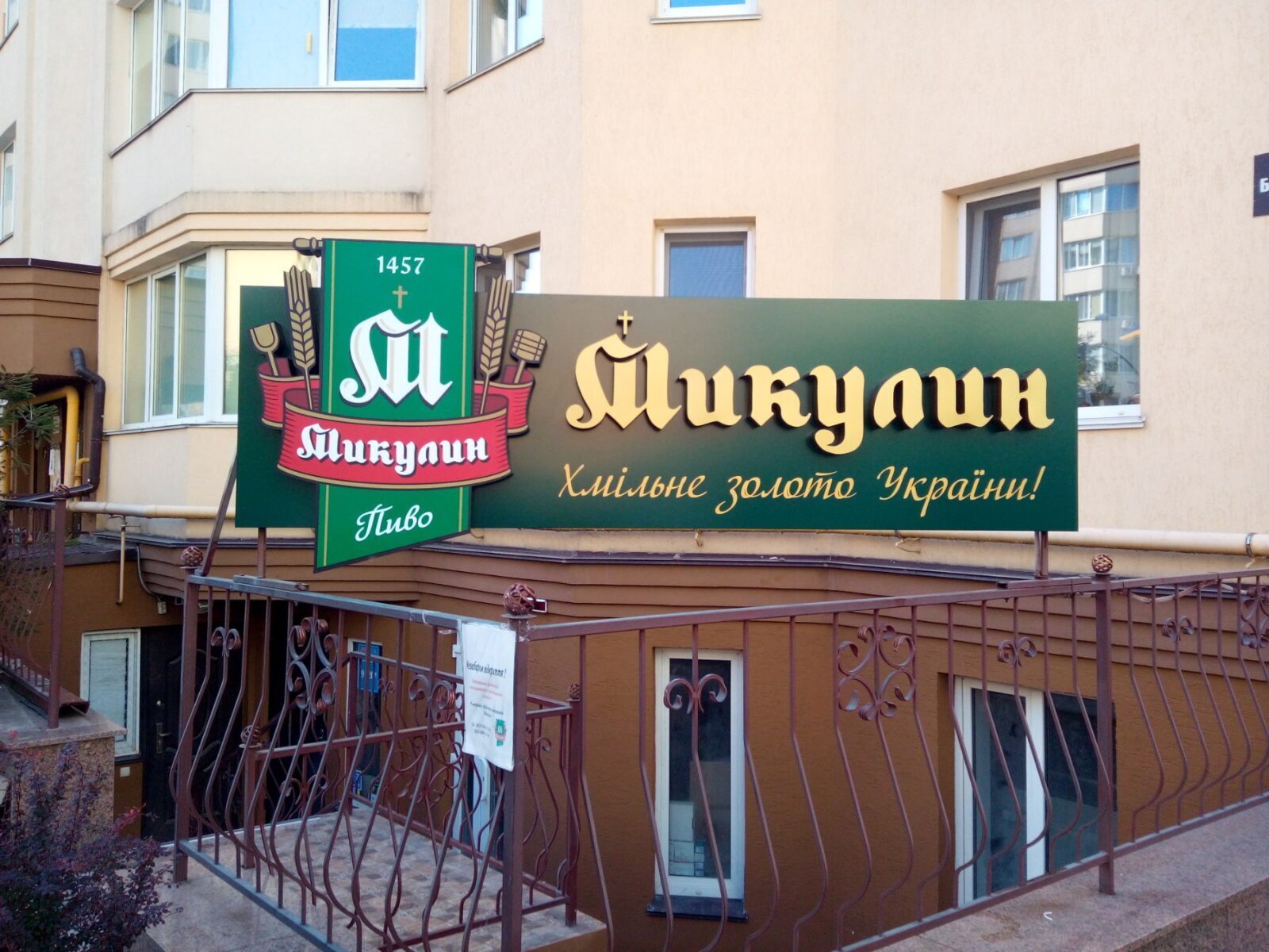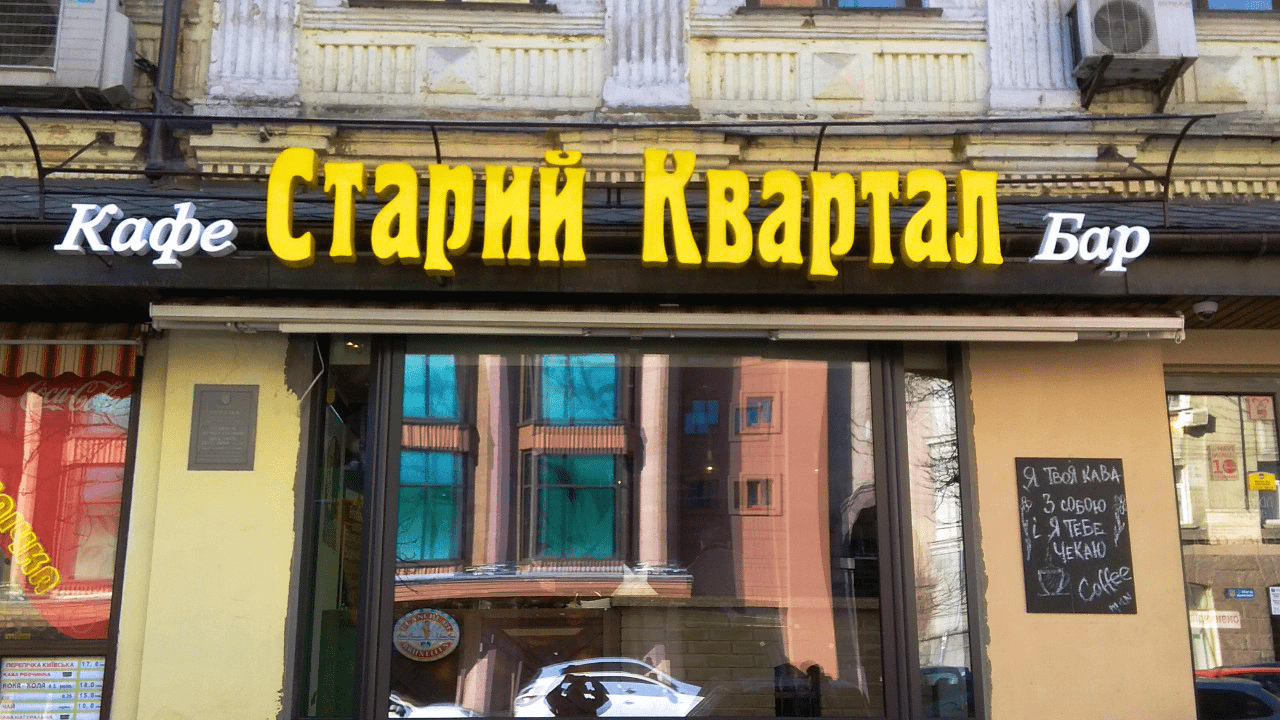 - Фасадні таблички. Містять інформацію про режим роботи компанії та розміщуються біля входу, на фасаді будівлі. Допомагають клієнтам знайти потрібний заклад.