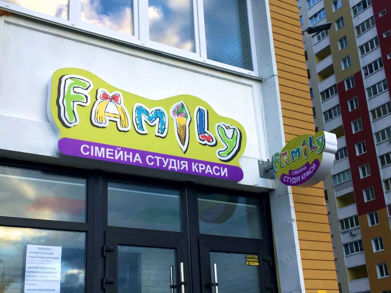 - Вивіски. Можливе виготовлення вивіски будь-якого розміру та форми, з підсвічуванням та без неї. При розробці дизайну обов’язково враховуємо архітектурні особливості будівлі, а також використовуємо якісні та довговічні матеріали (алюмінієвий композит, пластик, скло та метал).