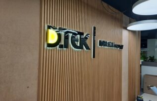 Це стильне бюджетне рішення для оформлення вивісок. Окремі елементи вирізують із тонкого листового матеріалу та монтують на невеликому віддаленні від стіни. При цьому падаюча тінь створює ілюзію об’єму.